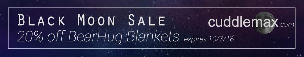 This Black Moon we wish you much wellness and prosperity! We’re offering a 20% discount on all BearHug Blankets. Use code ‘BLACKMOON’ at checkout. Coupon expires October 7, 2016, 11:59 p.m. Have a great week!